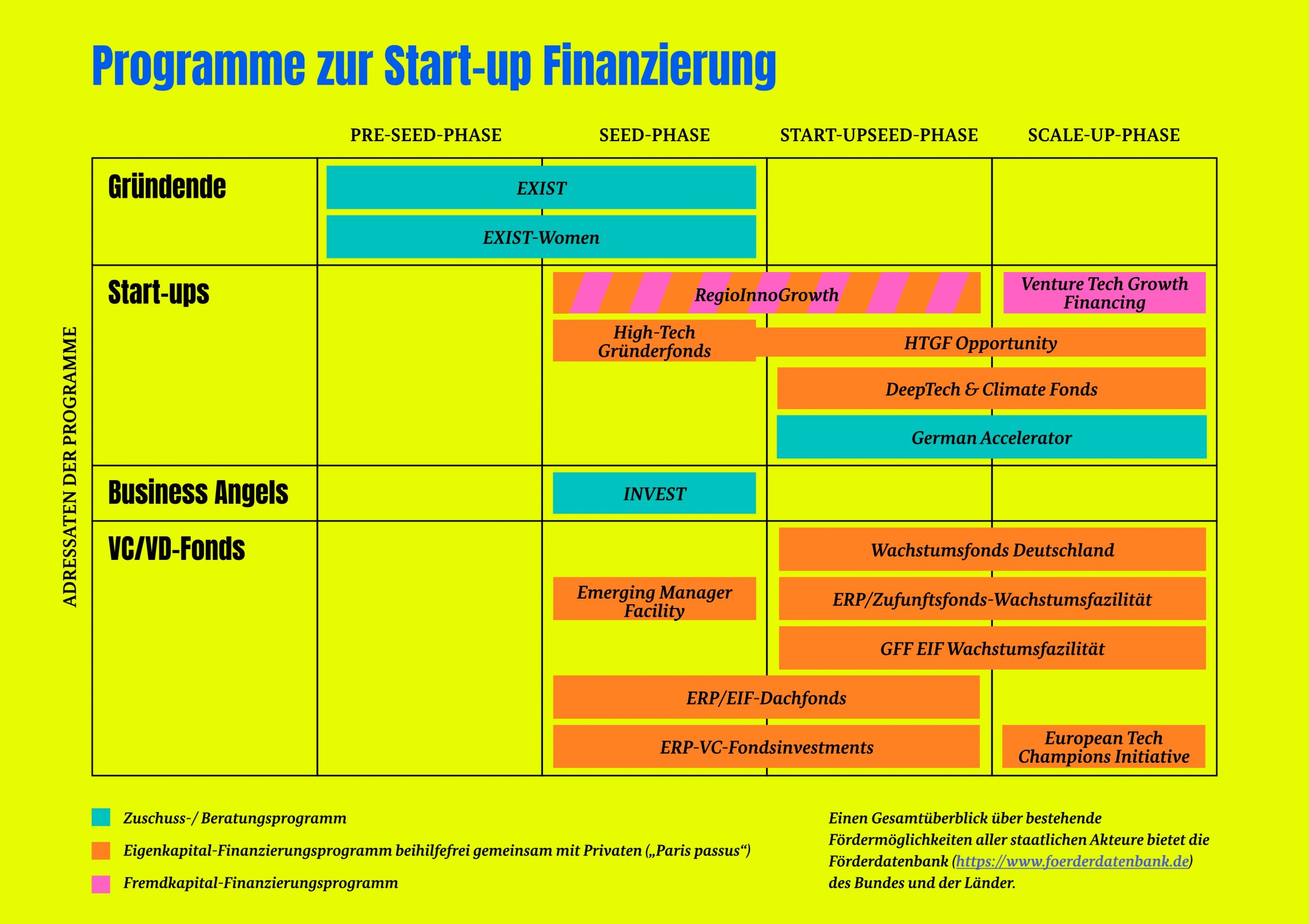 Die Programme zur Start-up-Finanzierung nach Phasen