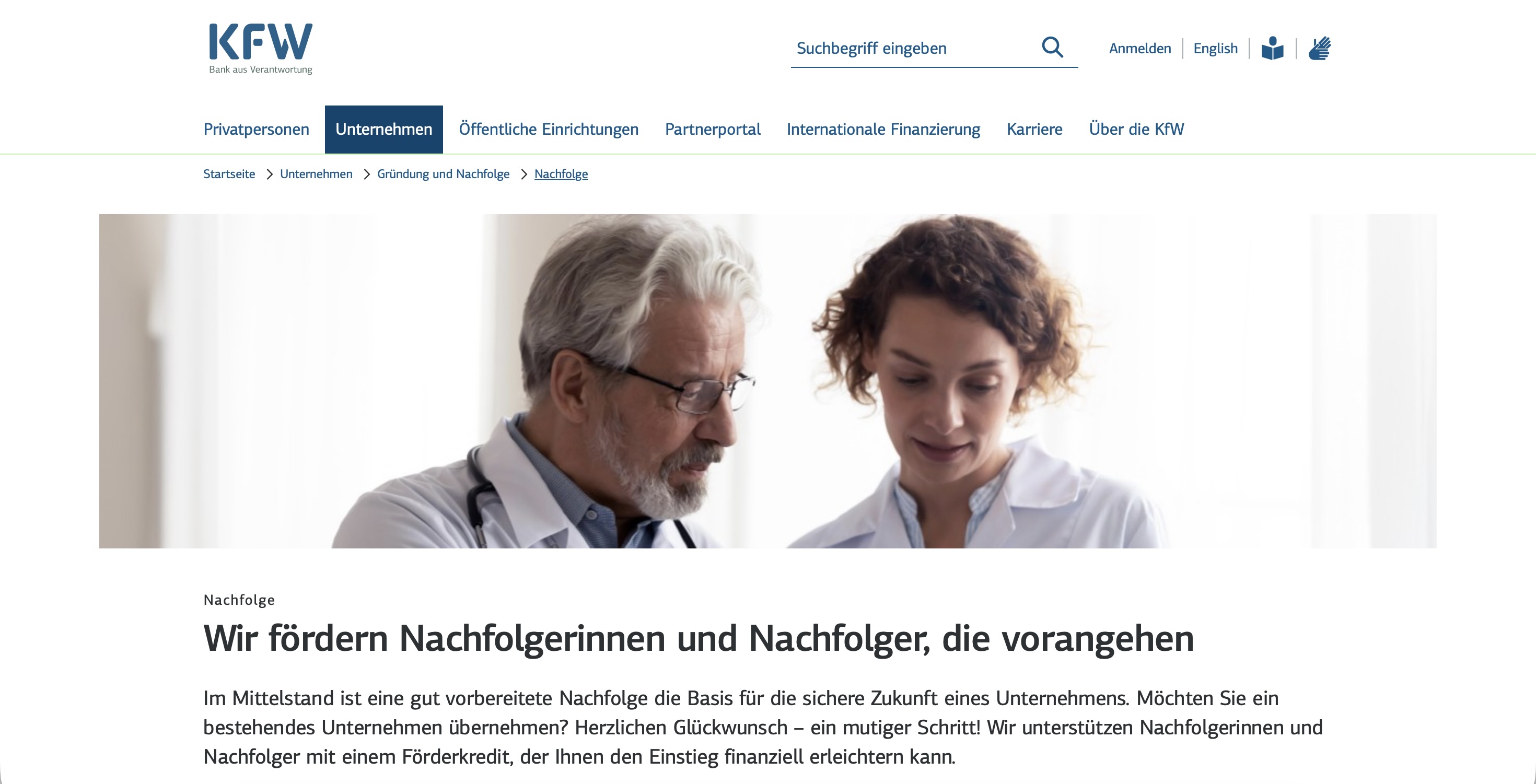 Die KfW unterstützt Nachfolgerinnen und Nachfolger mit einem Förderkredit, der den Einstieg finanziell erleichtern kann.